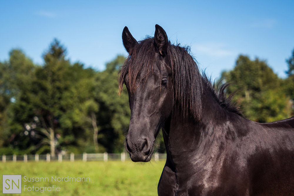Zusammen mit seinen vier neuen „Brüdern“ (auch Friesenhengste) lebt er nun auf dem Hof von ganz lieben Pferdemenschen.