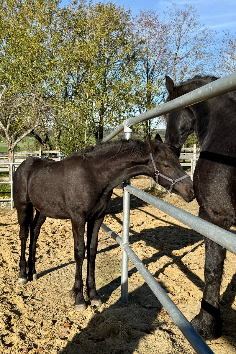 Das Warten hat ein Ende - Ende Oktober sind unsere beiden Fohlen VIVALDI (Lusitano) und DIOR (Friese) bei uns eingezogen. Zu dem vervollständigen die beiden Aufzuchtengste ELVIS (Friese) und AMBASSADOR (Deutsches Barockpferd) die diesjährige Gruppe.
